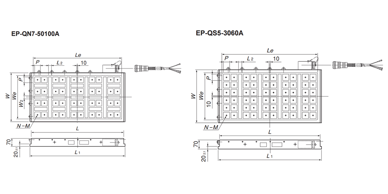 | W | L | We | Le | 磁極數(shù) | P | L2 | L1 | N | M | |||
