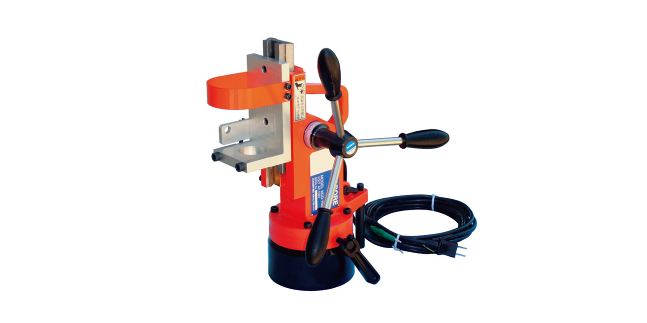• 小型便攜式磁力鉆孔機。能夠在 20 mm 或更厚的工件上鉆 20 mm 孔