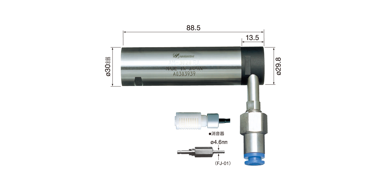 | AM-3020RA | 1799 | φ30 mm | 18000min-1(0.5MPa) | 125W | 0.3~0.5MPa | 175 Nl/min | 339 g (不含軟管) |