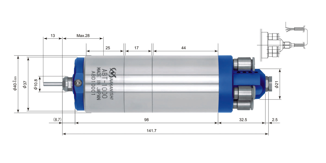| ABT-1000 | 1856 | Φ40mm | 88 W(0.55MPa) | 100000 min-1(0.55MPa) | 1μm以內(nèi) | 50Nl/min | 135Nl/min | 820 g |