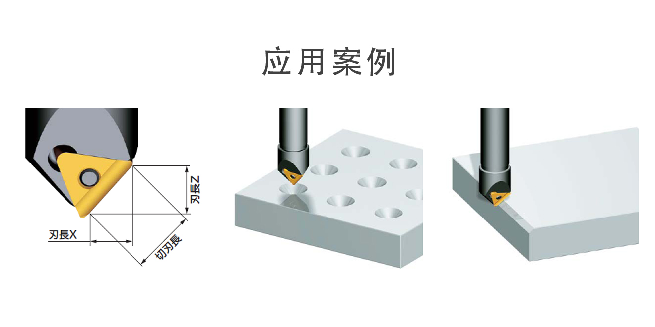 ※請(qǐng)根據(jù)工件形狀,夾具狀態(tài),倒角量的大小和切刃位置來調(diào)節(jié)加工條件。倒角量大時(shí),請(qǐng)盡量降低加工條件