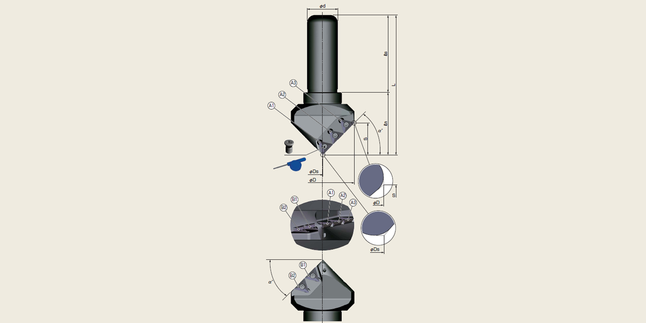 | 型號 | 刃數(shù) | 尺寸(mm) | α° | 適配刀片 | 加工能力 | 段差殘存的范圍mm | Z值補償(mm) | ||||||||