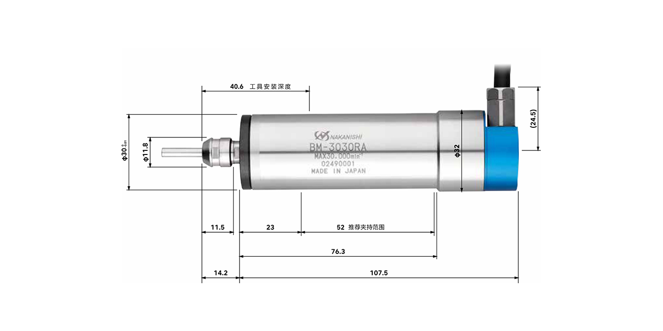 | BM-3030RA | 7925 | φ30mm | 30,000min?¹ | 350W | 1μm以?xún)?nèi) | CHA系列 (φ0.5~φ4.0 mm) | 60mm | 474g |