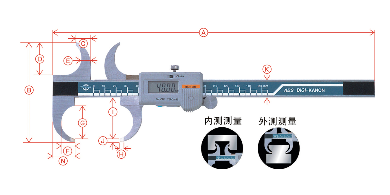 • 用于傳統(tǒng)游標(biāo)卡尺直量爪無法測量的工件