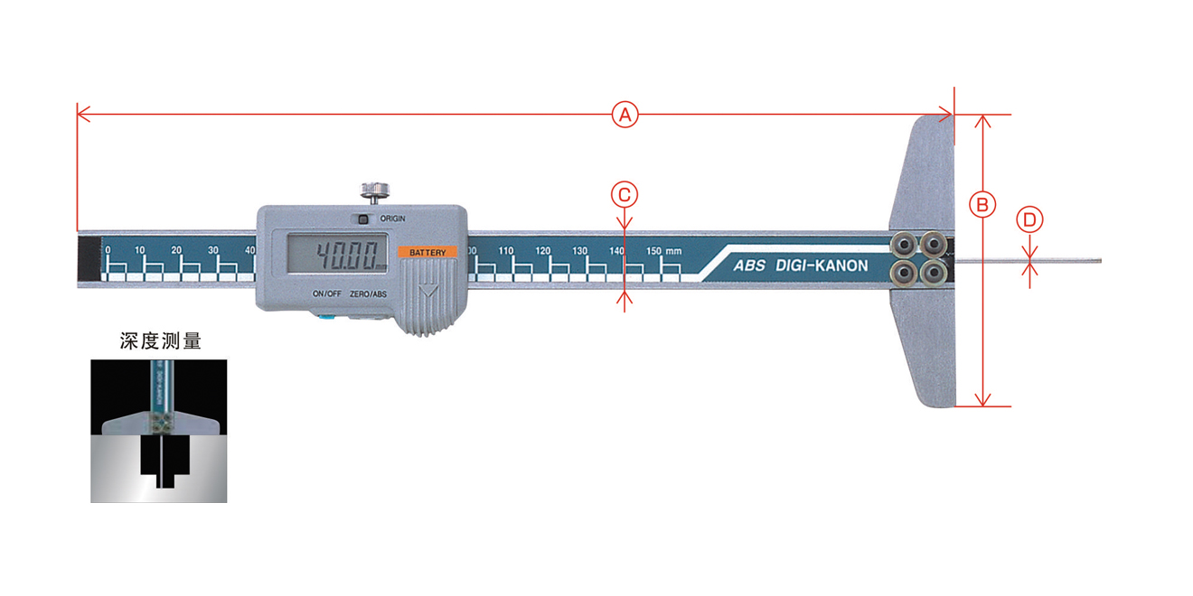 | 型號 | 測定范圍 | 最小讀值 | 誤差 | A | B | C | D |