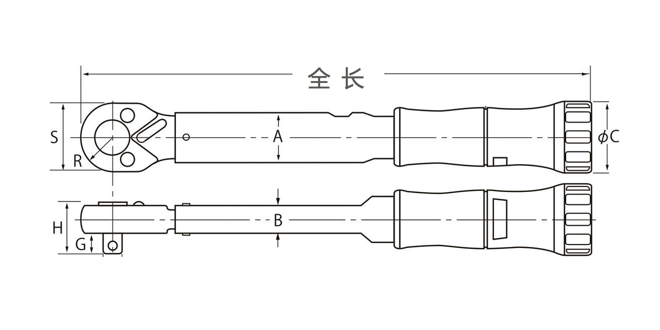 | 公制 | Kgf · cm | 牛頓 | N · m | mm | H | G | S | R | A | B | φC | |||