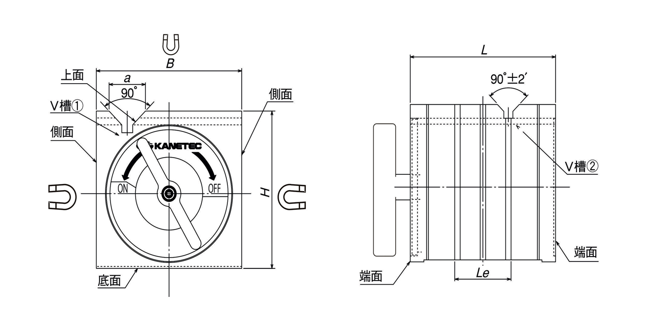 | V槽① | V槽② | V槽① | V槽② | B | H | L | Le | a | |