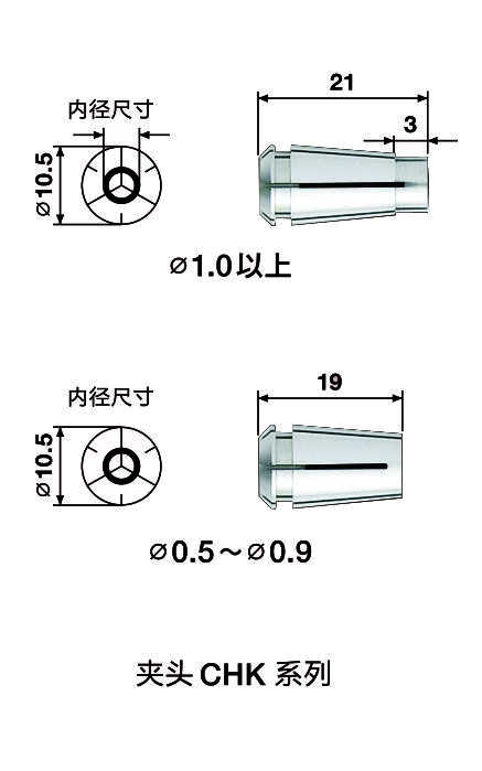 | - | CHK-□□ | φ0.5、φ0.6、φ0.7、φ0.8、φ0.9 | ||