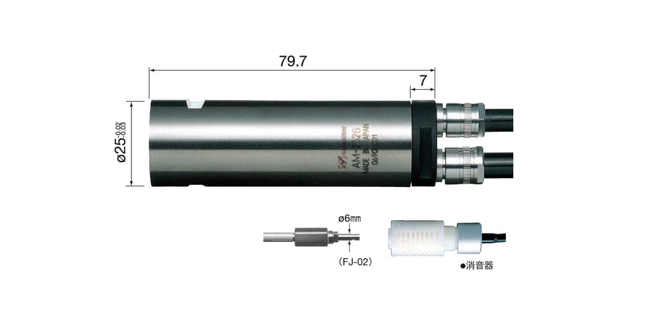 AM-2526R 1801 φ25 mm 24000min-1(0.5MPa) 130W 0.3~0.5MPa 205 Nl/min 220g (不含軟管)
