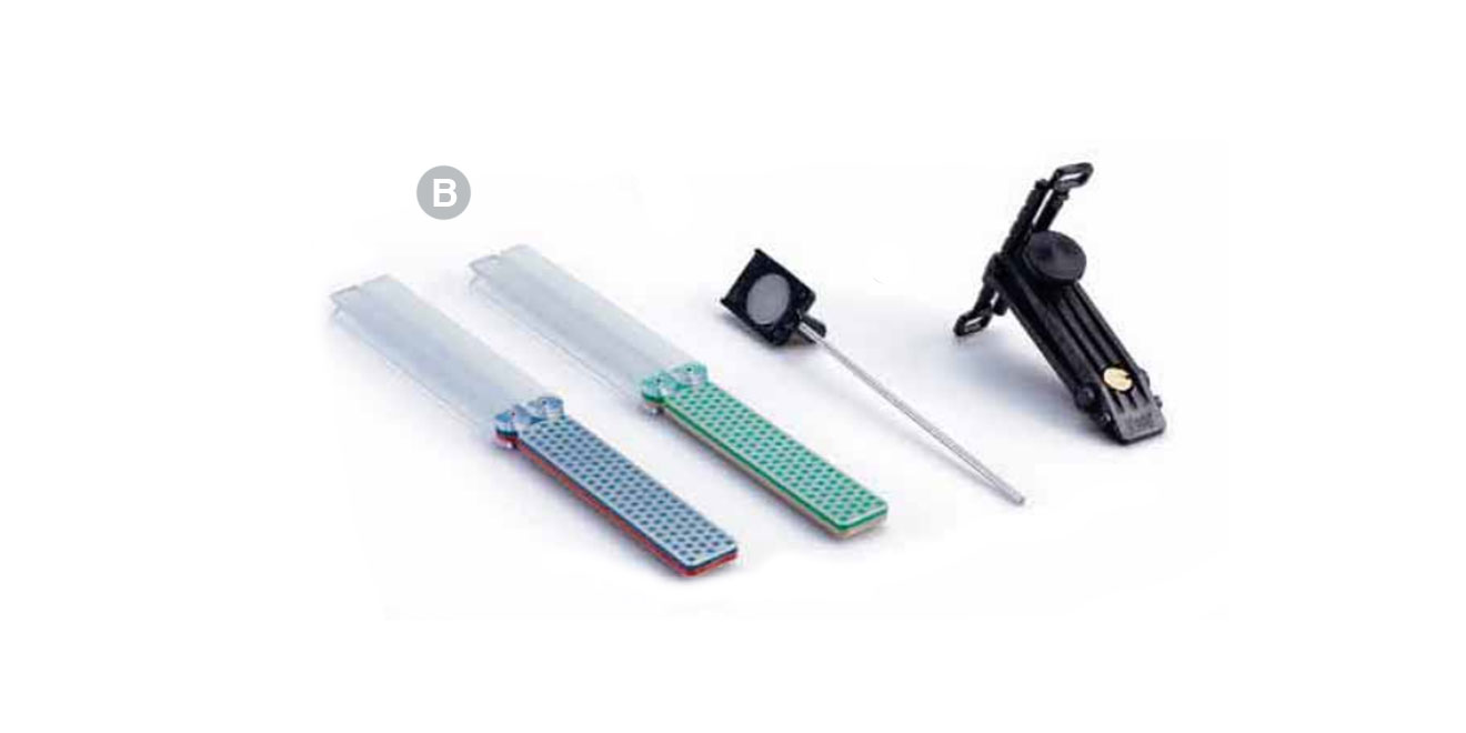 精心設(shè)計(jì)為促使達(dá)到快速,完美的磨削每個(gè)工具包包括:一個(gè)磨石架,一個(gè)刀邊導(dǎo)軌和三片鉆石磨刀板