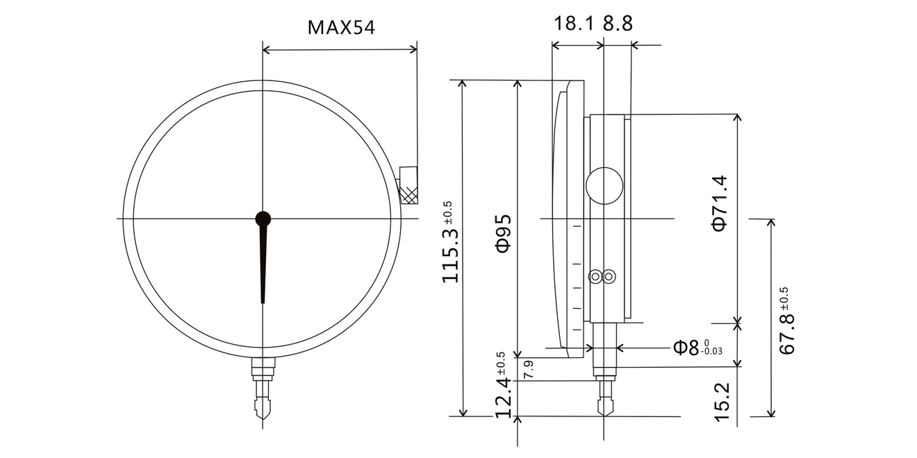 大表盤容易判讀非常直觀,最小刻度0.5μm,可以測量±0.05mm范圍的尺寸