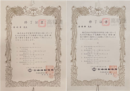 日本KANON官方授權(quán)維修證書